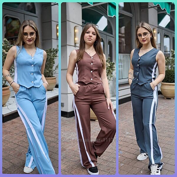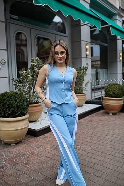 Подробное описание: 42-48р Жіночий костюм жилет та брюки палаццо 733