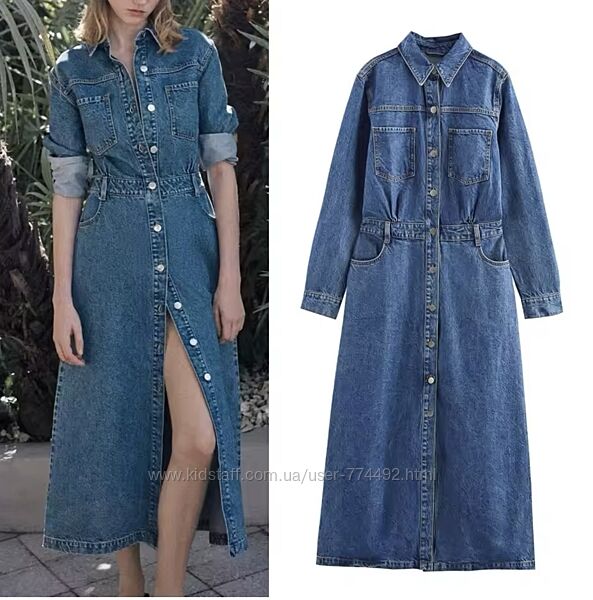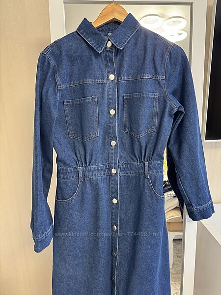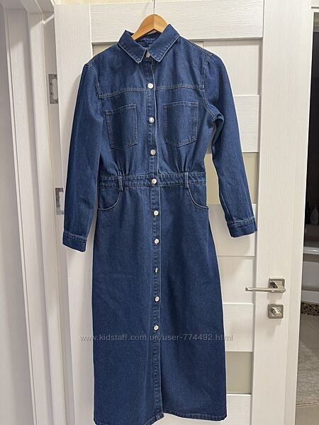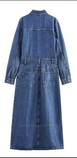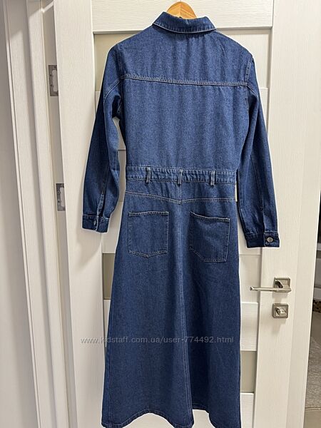 Джинсова сукня, розмір S, колір синій. Ідеальний вибір для повсякденного використання. Стильна, нова колекція як у Zara. Купила в фабричного продавця Китаю, що відшивають для Зари. Без бірок, випрала на полоскання від фабричного запаху, думала трохи сяде, але завелика на Xs та довга для 160 зросту. Ідеально для високих струнких дівчат. На S- M невелику розмір чудово.Довжина повна від коміру 129 см, під пахвами 50 см, талія 38-39 см, бедра 50-53 см, плечі 42 см, рукав 60 см