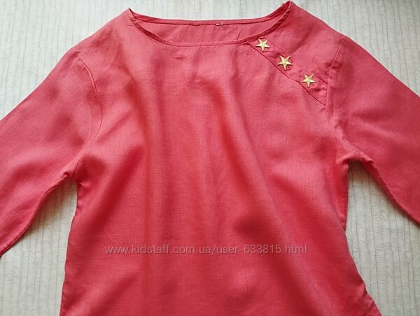 Бирки с брендом, размером, составом срезаны. За состав, уверена, что это 100% лен. Замеры: плечи приспущены 45см пог 54см поб 51см длина 52\60см рукав 37см. В идеале.