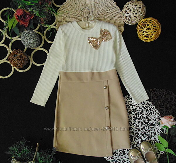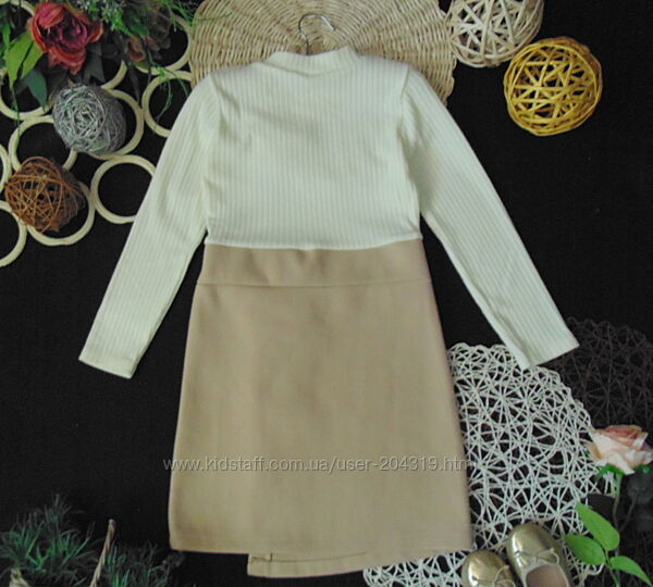Фасон: Верх із ребристої трикотажної тканини, низ — спідниця з накладкою на гудзиках