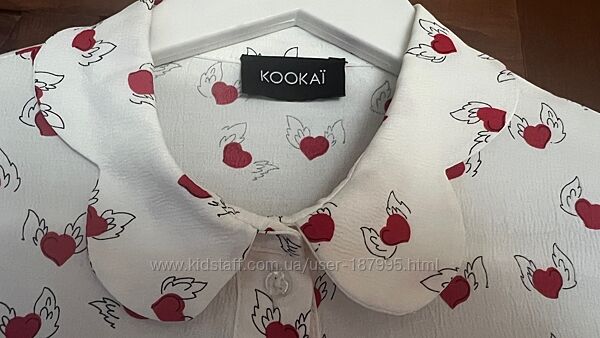 Нарядная идеальная блузка Kookai, Франция,размер 1. Цвет белый, принт сердечки – крылышки, красивый фигурный воротничок. Отличное состояние, была в носке пару раз. Замеры: длина 63 см, плечи 35 см, ПОГ 44 см, ПОТ 41 см, низ 44 см, рукав: от плеча 60 см, от шеи 72 см, от подмышки 44 см. Не тянется, бирку с составом срезала, но это вискоза, отличного качества.