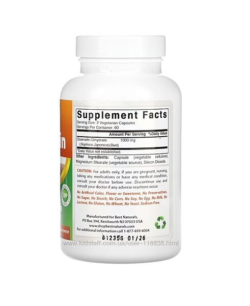 # Best Naturals, Кверцетин, 120 вегетарианских капсулОПИСАНИЕ: