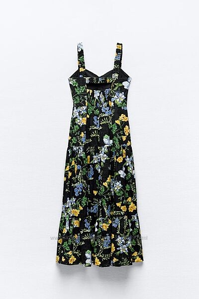 Сукня бавовняна з прошви (вибійки) Zara. Розмір S. Ідеальний стан, в квітковий принт з елементами вишивки. До половини сукні має підклад. На бретелях.Заміри: