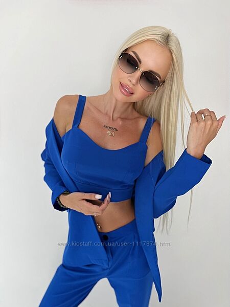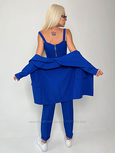 Подробное описание: 42-48р Костюм-трійка, брюки, топ та піджак з костюмної тканини Vanity