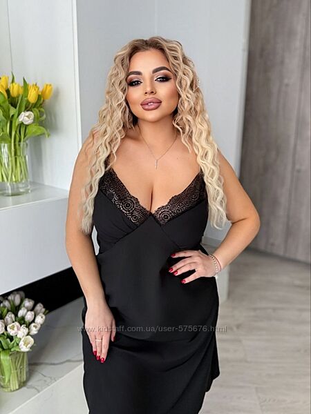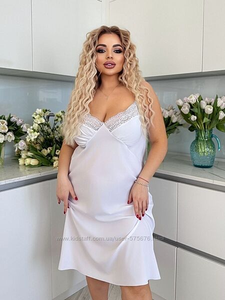 Нічна сорочка.Довга нічна сорочка на регульованих бретелях попереду по грудях декорована мереживом. Тканина софт, однотонна, тканина не тягнеться. Поліестер - 95%, Квітка - 5%.