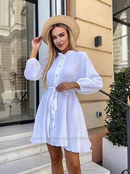 Невагома гарна та дуже красива літня сукня з натуральної тканини муслін. Сукня на ґудзиках , під поясок створена для теплих літніх прогулянок містом
