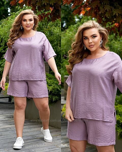 Подробное описание: р.48 до 58р. Прогулянковий літній костюм з шортами льон жатка
