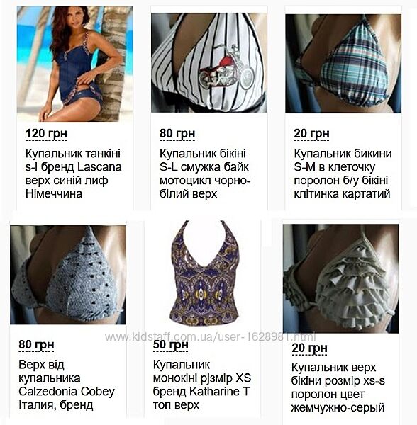 | Фасон купальника | Бикини, Раздельный, Танкини, Топ |