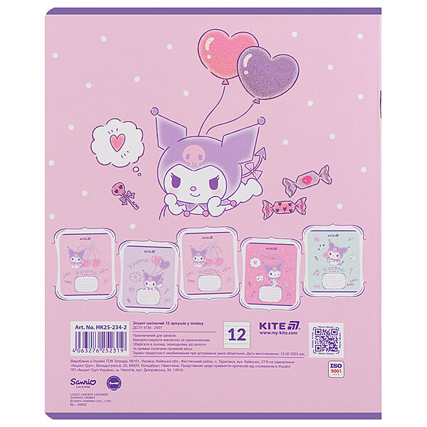 Зошит шкільний Kite Kuromi HK25-234-2, 12 аркушів, лінія