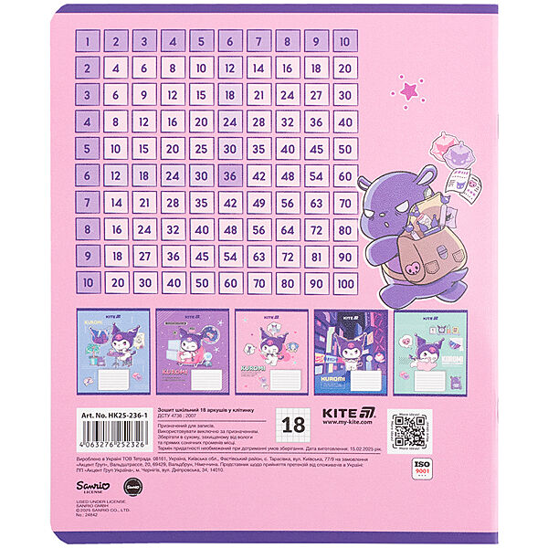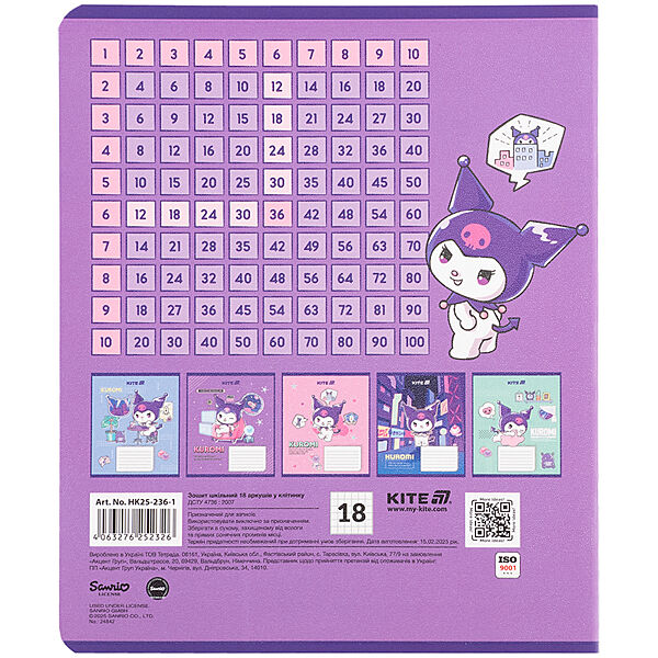 Зошит шкільний Kite Kuromi HK25-236-1, 18 аркушів, клітинка