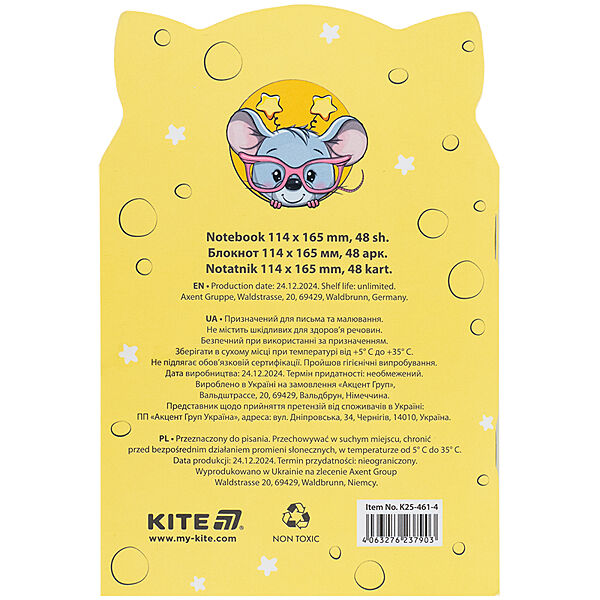 Блокнот Kite Cheese Mouse K25-461-4, 48 аркушів, клітинка