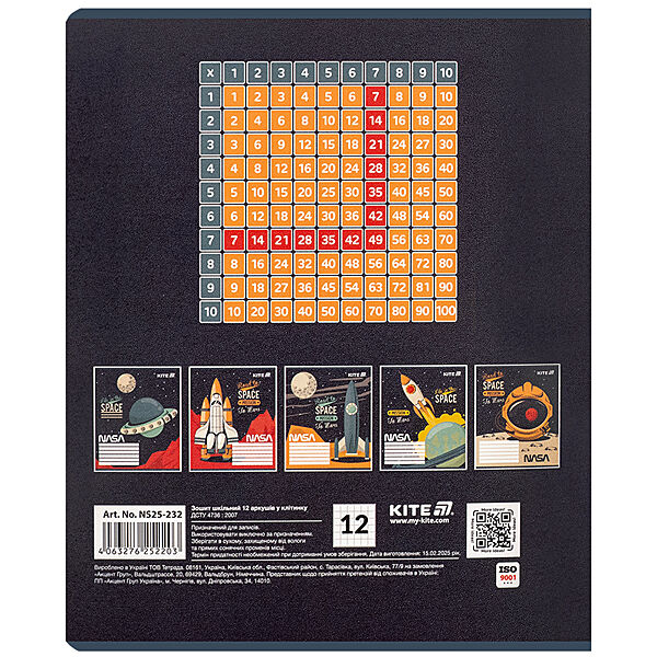 Зошит шкільний Kite NASA NS25-232, 12 аркушів, клітинка