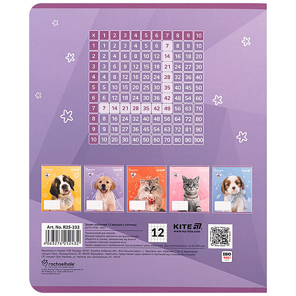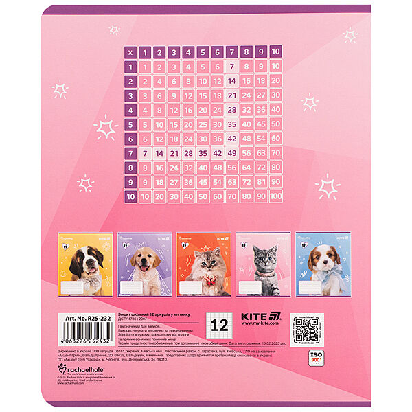 Зошит шкільний Kite Rachael Hale R25-232, 12 аркушів, клітинка
