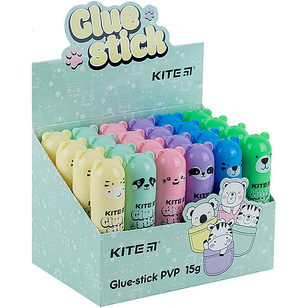 Клей-олівець PVP Kite K24-1131, Colorful, з фігурним ковпачком, 15 г