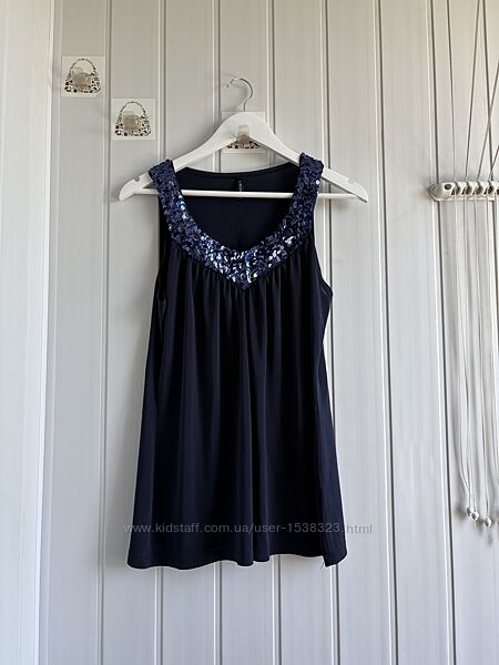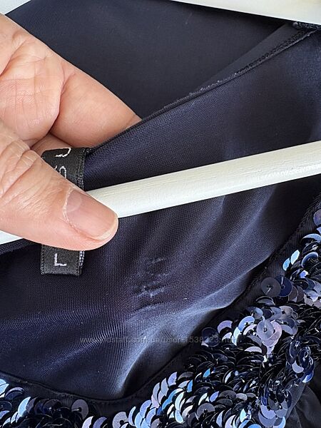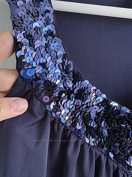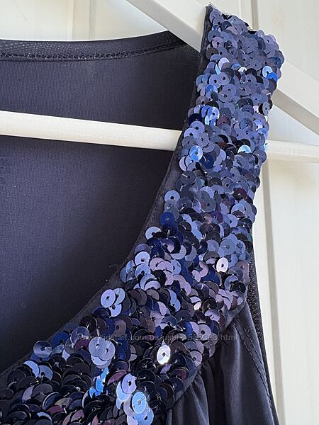 Очей не відвести. Глибокий колір, паєтки, багато-багато паєток, додают святковості та «смачну» родзинку. Довжина 70 ПОГ 45 ПОТ 45 Від груди вільна, призібрана, як струится тканина. А також тягнеться Біля лейбла з внутрішньої сторони невеличка затяжка, видно на останніх фото