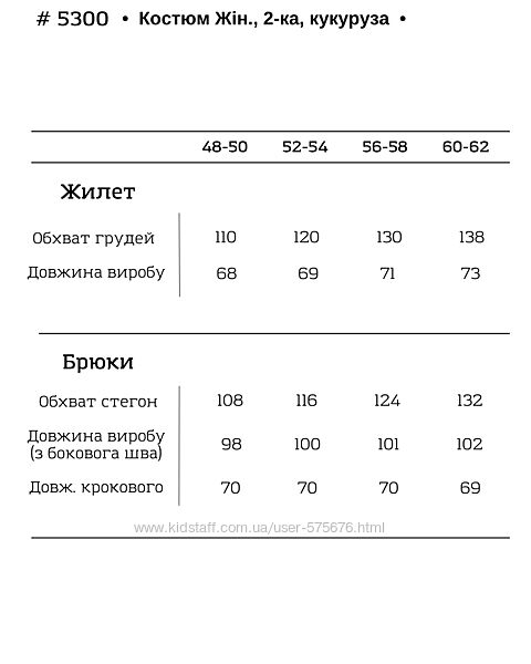 Подробное описание: р.48 до 62р. Костюм жіночий двійка жилет та брюки, тканина кукуруза