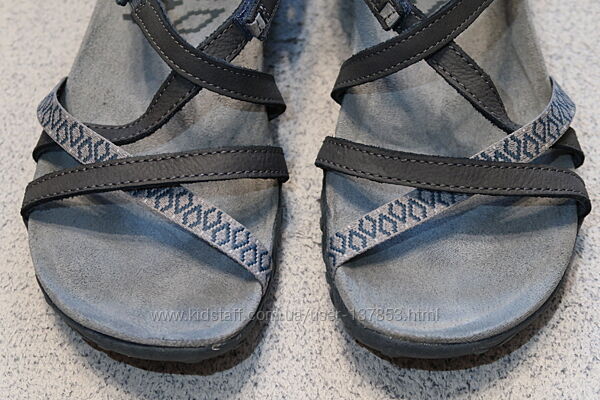 Босоножки Merrell оригинал - 37 размер, по стельке - 23,5 см от начала до загиба на пятке. Снаружи - кожа нубук + текстиль, внутри - текстиль. Стелька - текстиль очень мягкая Memory Foam. Подошва - резина. Очень легкие, мягкие, удобные. Ширина по стельке в самом широком месте - 9 см. Отличное состояние. Цена - 700 грн.