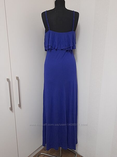 В грудях 40см, талії 38см, стегнах 47см, довжина по боковому шву 140см. Це з максимальними бретелями.Бретелі регулюється.Трикотажна тканина, тягнеться!