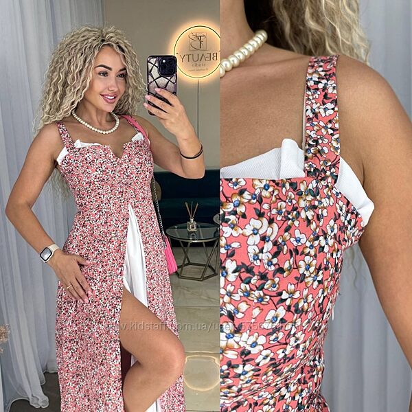 Вона має універсальну довжину, не сковує рухи, підкреслює талію та робить акцент на груди , на спині є вставки з резинка , за рахунок чого сукня гарно підходить на різні розміри. Збоку є молнія , щоб сукню було комфортно одягати.