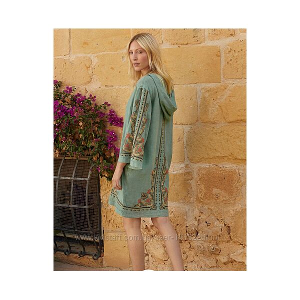 Вышитое льняное платье в стиле бохо с капюшоном Wrap размер10Погрузитесь в атмосферу бохо-шика с этим воздушным платьем из льна, украшенным исключительной вышивкой крестиком.