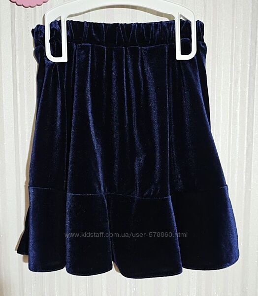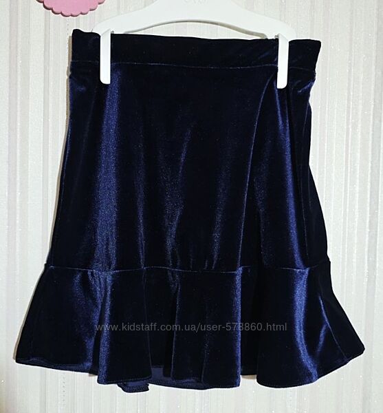 Синя ошатна оксамитова шкільна спідниця Zironka для дівчинки у розмірі 134.Стан ідеальний. Пояс - сзаду гумка.