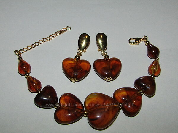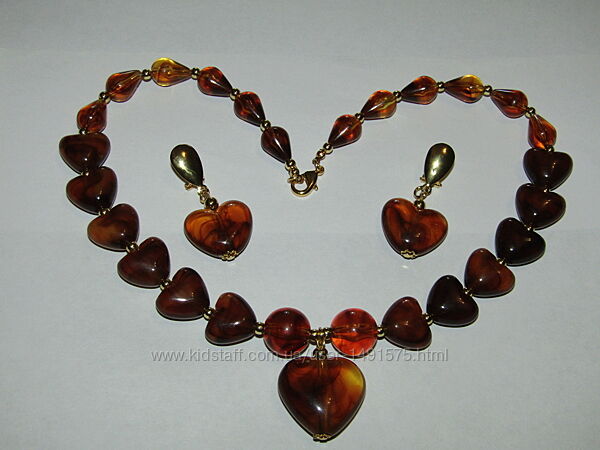 Шикарным подарком для женщины станет эффектный комплект из натурального янтаря коньячного цвета. В комплект входят бусы - колье с подвеской в виде сердечка , серьги и браслет.Очень красивый и модный дизайн . Позолота . Длина бус -50 см (1200 грн ). Длина браслета - 20 см ( можно увеличить при помощи цепочки -650 грн ). Длина серьги 4.5 см ( 650 грн ) . На серьгах застежка - французский замок . Очень удобная и практичная. Состояние комплекта - идеальное , не был в употреблении. Смотрится очень эффектно , дорого , статусно. Можно приобрести весь комплект полностью или по - отдельности.Элегантные, стильные, модные, статусные украшения . Подойдут для любого возраста .