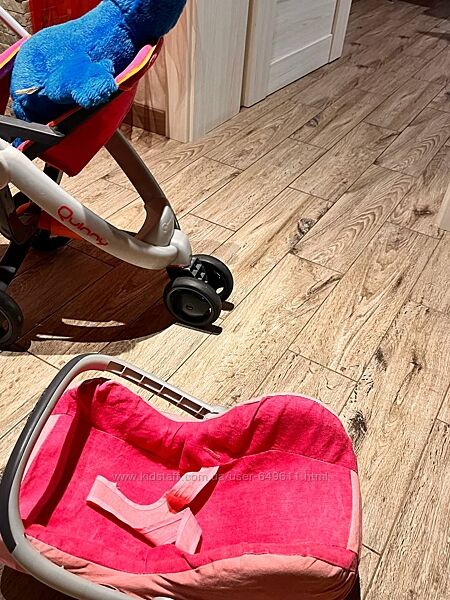 Дитячий візочок для двійні. Після однієї дитини, на вулиці гуляли з нею не багато. Єдине що часто прали самі сидіння, то втратили колір.+ автокрісло Smoby в подарунок(фіксується на візочку або можна носити окремо) - в місці де кріплення на візочок є тріщинка, але на функціональність не впливає. На останньому фото видно.