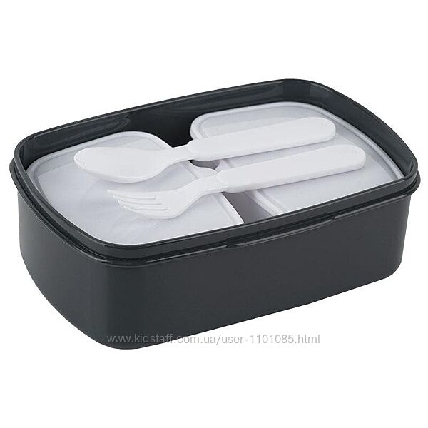 об´єм 750 мл, розмір 18х13,5х6 см – дуже місткий та відмінно вміщується у рюкзаку;внутрішнє наповнення – 2 контейнери з кришечками, виделка, ложка;