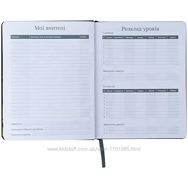 внутрішній блок на 46 тижнів з табелем, полем для персональних даних, полем для списку вчителів та Державною символікою;