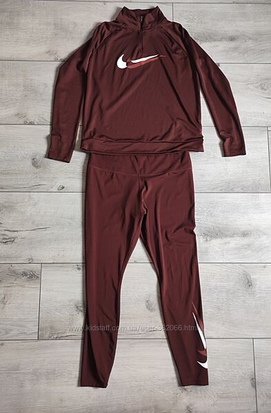 Шикарный костюм Nike Running Dri-fit размер М -L. Оригинал, подойдёт для фитнес зала или занятий спортом. Состояние новой вещи. Верх замеры, длинна от плеча 64 см, длинна рукава от горловины 72 см, ширина под мышками 50,5 см, - замеры в спокойном состоянииНиз длинна по внешнему шву 94 см, длинна по внутреннему шву 69 см, высота посадки спереди 29, высота посадки сзади 33 см, талия 39, бедра 49. Замеры в спокойном состоянии.