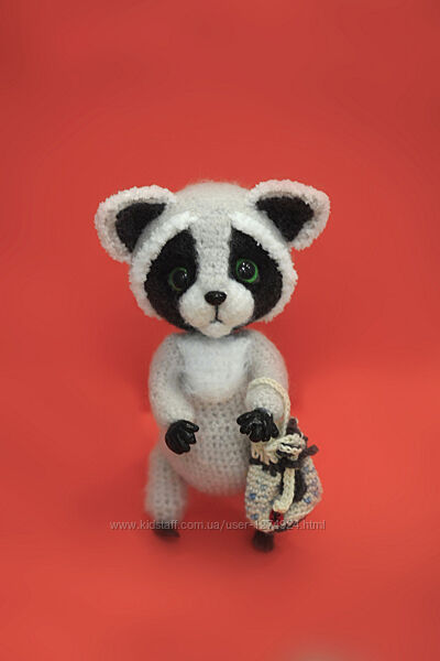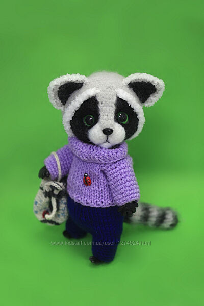 Енотик в одежках с сумочкой связан крючком из мохеровой пряжи. Размер 21 см. Внутри каркас из медной проволоки, голова на шплинте. Одежда снимается. Лапки и божьи коровки из полимерной глины. Подарочная упаковка, ручная работа.Другие объявления продавца