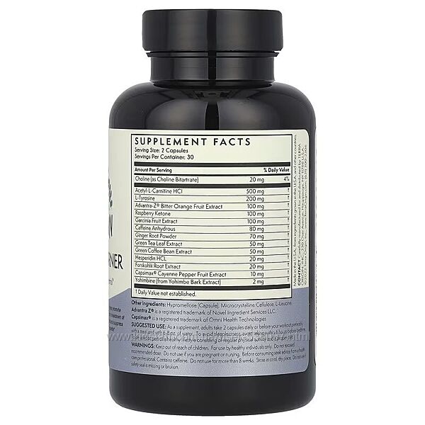 Хранить в недоступном для детей месте. Только для здоровых людей. Не следует превышать рекомендуемую дозировку. Не следует принимать во время беременности и кормления грудью. Перед употреблением проконсультируйтесь с медицинским работником. Содержит кофеин. Не используйте более 8 недель подряд. Хранить в сухом и прохладном месте.