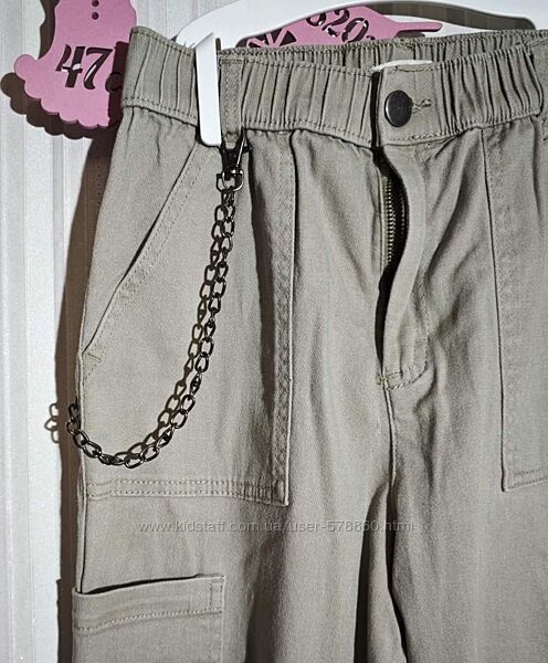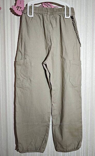 Бежеві стильні штани з ланцюжком від Reserved у розмірі 140 для дівчинки.Стан відмінний. Ланцюжок знімається. Тягнуться.