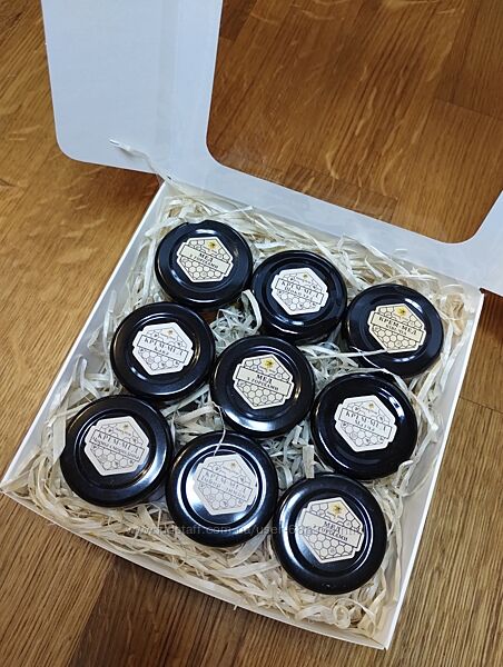 Фото 1 ціна 450 грнНабір горіхів з медом і крем-меду, 9 банок по 50 грам