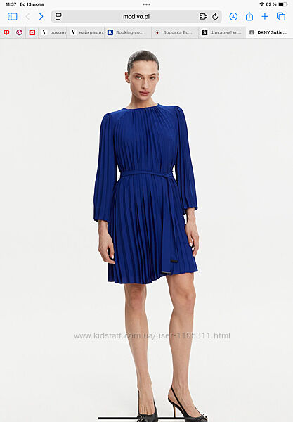 Продається оригінальне коктейльне плаття міні Donna Karan New York модель DD5JJ43 — нове з біркою, привезене з США. Елегантне, структуроване, з глибоким синім кольором, плісированим кроєм і підкладкою — це не просто одяг, а вишуканий акцент, який підкреслює фігуру й статус. Фасон приталений, довжина міді, з повними рукавами, ідеально підходить як для офісу, так і для вечора чи урочистих подій. Матеріал: віскоза/поліестер, на підкладці. Розмір М\L (заміри на запит). Стан новий з етикеткою, оригінал. Відправка Новою Поштою або любою, можливий самовивіз у Києві. Без повернення.
