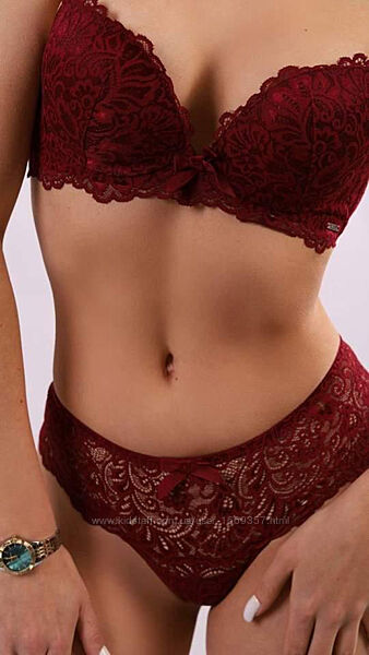 Неймовірно стильний та жіночний комплект спідньої білизни. Комплект включає бюстгальтер і трусики. Бюстгальтер з ущільненою чашкою піднімає груди і створює ефект природного об´єму, підкреслюючи вашу привабливість. Поринайте у світ витонченої розкоші та неперевершеного комфорту з цим вишуканим бордовим комплектом жіночої білизни. Він поєднує в собі класичну елегантність та сучасний стиль, створюючи ідеальне поєднання для будь-якого випадку. Цей комплект включає бюстгальтер і трусики, виконані з м´яких і дихаючих тканин. Ідеально підходить для щоденного носіння або особливих випадків, коли потрібен витончений та бездоганний образ.