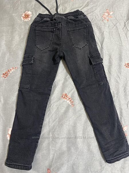 Теплі дитячі джинси для хлопчика - 134 р., маломір, на 122-128 підійдуть.Гарний стан, всередині приємний фліс, реальні заміри: