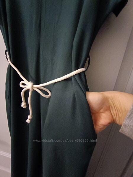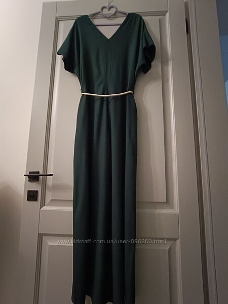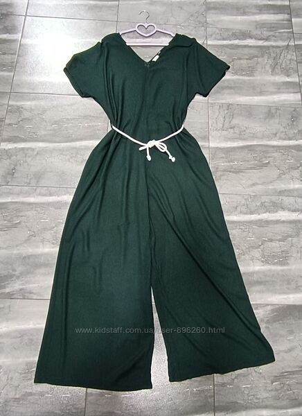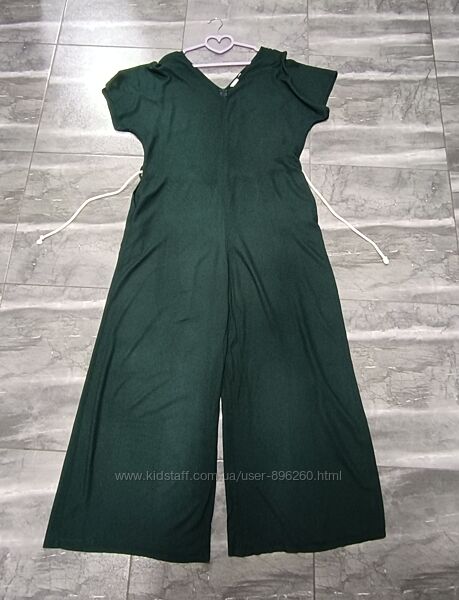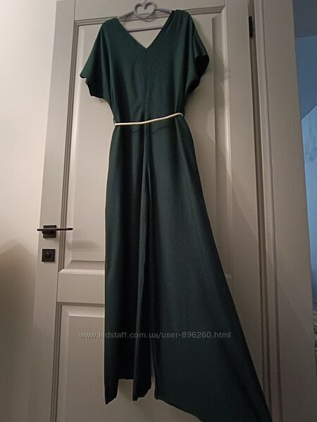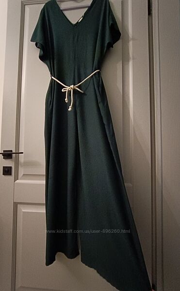 Дуже крутий комбінезон, з натуральної віскози, насиченого темно-зеленого кольору. Гарно лягає і спадає. V-образний виріз з переду і позаду, застібається на спинці потаємною молнієб. Має дві кишені. Фасон вільний, широкі калоші. Бомба, як на повсякденне насіння, так і додавши аксесуари - гарний вечірній.Сток. Стан ідеальний. Розмір М.