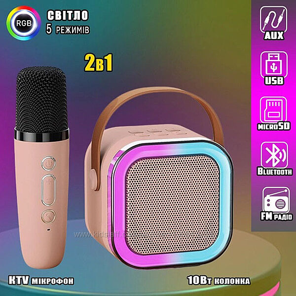 Портативна колонка з караоке мікрофоном та RGB підсвічуванням