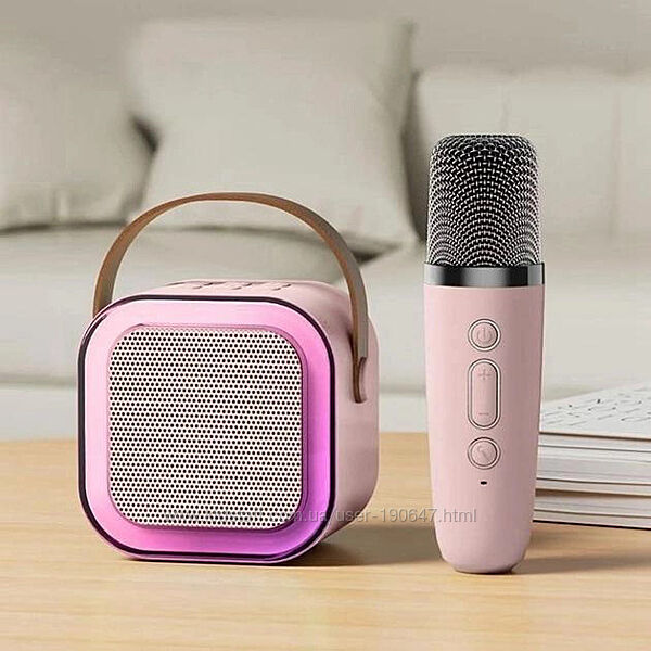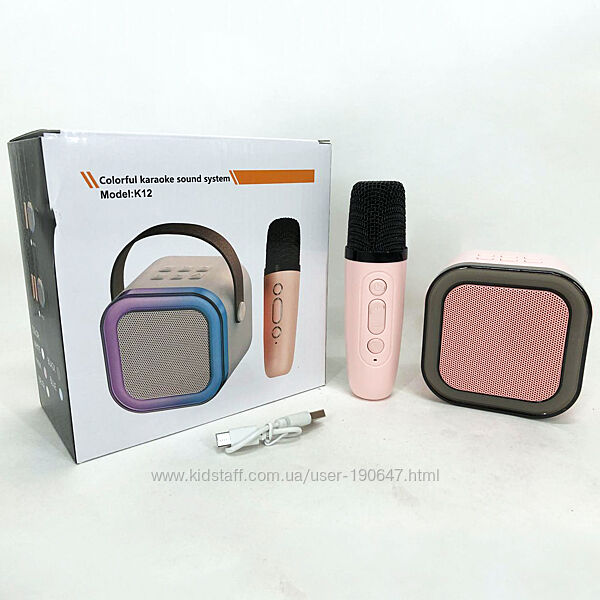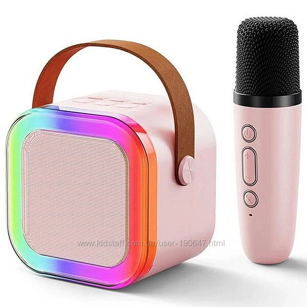 Кольори в асортименті!Професійна караоке-колонка з мікрофоном та різнобарвним підсвічуванням.Висока якість звуку: Караоке-колонка з Bluetooth та забезпечує високоякісні звукові ефекти завдяки бездротовому міні-мікрофону.RGB підсвічування: Виберіть один із 5 регульованих світлодіодних світлових ефектів, що синхронізуються з музикою, для створення приголомшливих візуальних вражень.
