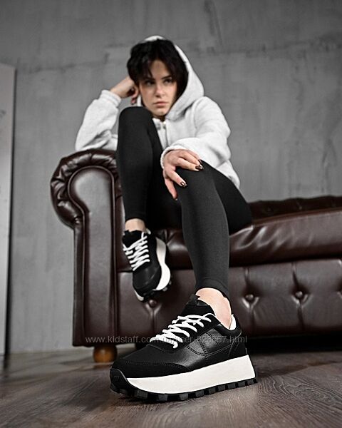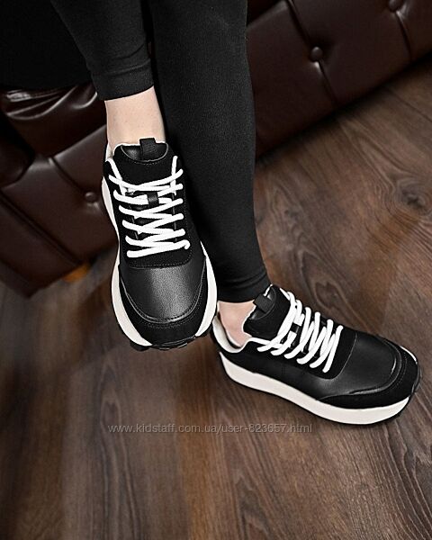 Подробное описание: Стильні чорні кросівки на невеликій платформі