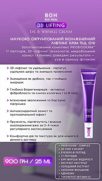 Подробное описание: BIOHEAL BOH PROBIODERM 3D Lifting Eye & Wrinkle Cream 3D-ліфтинг під очима