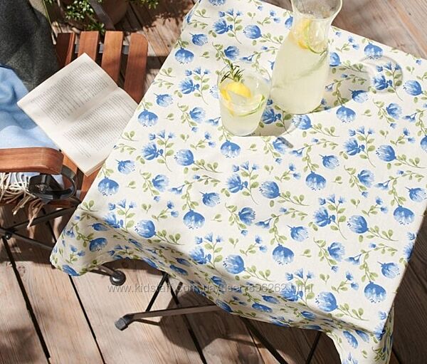 Скатертина, яку можна прати, приблизно 90 x 90 см. Водостійка – підходить для використання в приміщенні та на вулиці. Виготовлена з чистої бавовни. Дуже легко чиститься. Плями можна протерти вологою ганчіркою або прати в пральній машині – швидке прасування відновить захист від плям. Ця скатертина підтримує фермерів. Перевірено на забруднення – зовнішніми акредитованими організаціями.