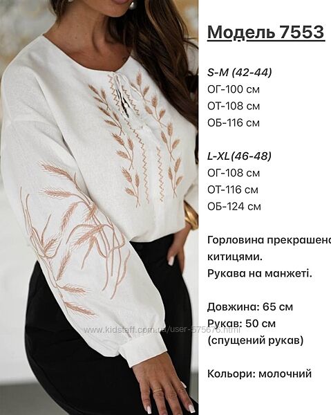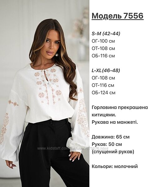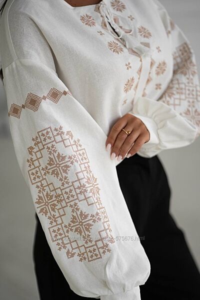 42-44. 46-48 Жіноча вишита сорочка з бежевою вишивкою