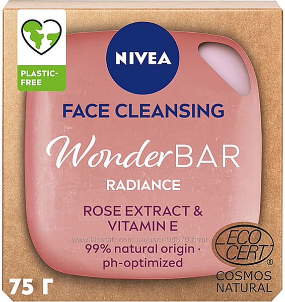 Чистоту та сяйво шкіри обличчя гарантує безпечний засіб для очищення у твердому форматі WonderBar. Його формула з екстрактом троянди та вітаміном Е:- на 99% складається з натуральних інгредієнтів;