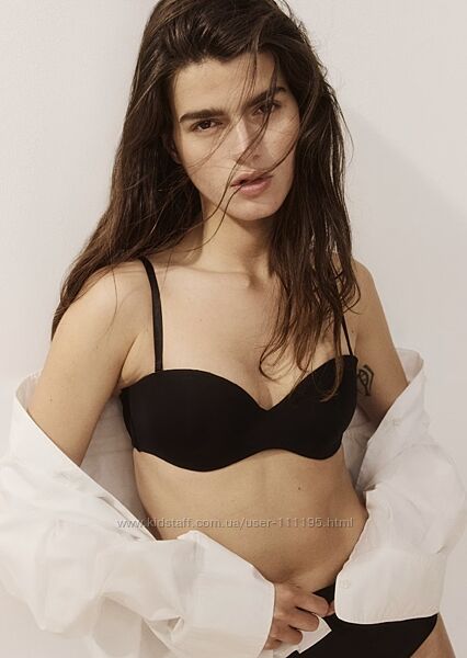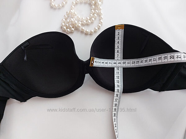 Черный бюстгальтер-балконет из микрофибры от H&M Такая модель strapless (без бретель) точно пригодится поклонницам соблазнительных нарядов с открытыми плечами. Благодаря гладкой микрофибре этот бюстгальтер практически не заметен под одеждой. Формованная чашка на косточке и тонком поролоне приподнимает грудь, обеспечивая нужный уровень поддержки, образует красивое, эффектное декольте! Косточки по бокам и застежка на крючки сзади. Есть петли для съемный бретелей. Бретелей в комплекте нет!!! Размер 75D. Смотрите замеры чашки на фото. Длина пояса в спокойном состоянии 63см, тянется до 79см. СТОК. Состояние нового, без бумажных бирок. Цена на данную модель на оф. сайте 25$. *** Оплата на карту Приватбанка. Доставка Новой почтой, Укрпочтой. Оплата за доставку - при получении. Возврата и обмена нет.