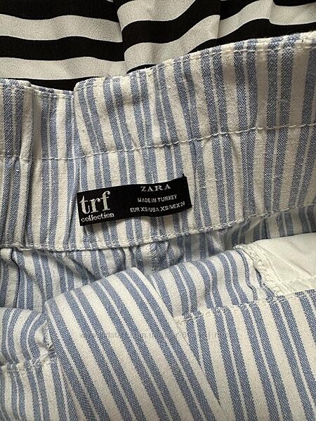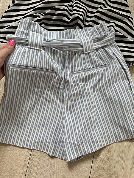 Шорты тканевые высокая посадка летние в полоску zara голубые белые xs-s