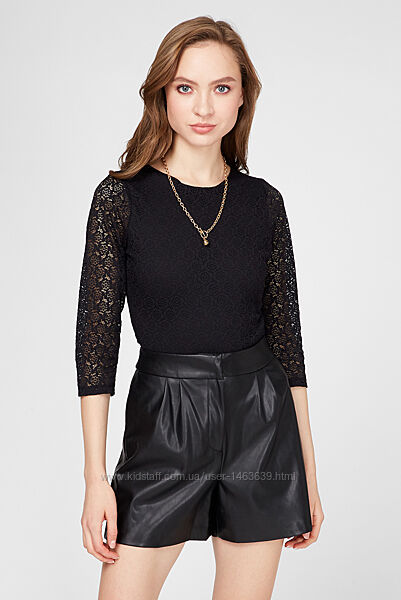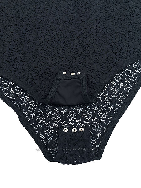 Шикарний мереживний боді DRAGANA в чорному кольорі від бренду Naf Naf.Оригінальний виріз на спинці із застібкою на ґудзик.