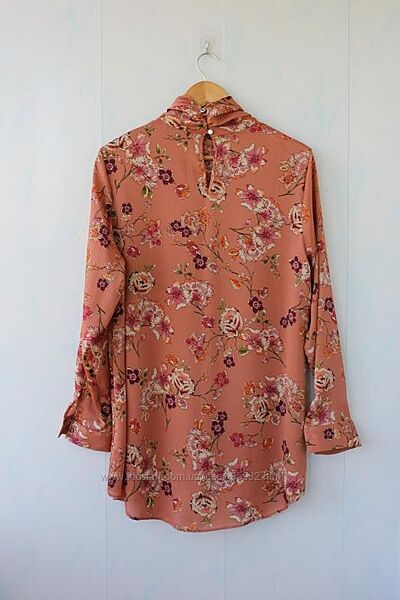 Дуже красива блуза в квітах primark, з дуже незвичайною горловиною/воротком, має стильний вигляд і ошатний. Тканина дужеприємна до тіла. На бирці 16 розмір. НОГ — 56, довжина рукава — 59,