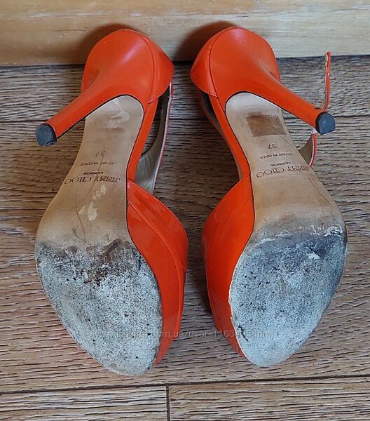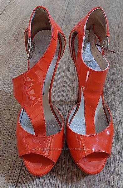 Босоножки Jimmy Choo Made in Italy оригинал терракотового цвета 37 размер, длина встельки-24см.Высота каблука-15см, высота платформы-2,5см.